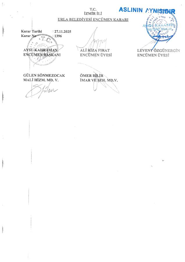 Planın bir kopyası 28.11.2025 tarihinden başlayarak bir ay süreyle Belediyemiz Plan ve Proje Müdürlüğü katında ve Belediyemiz internet sayfasında (http://www.urla.bel.tr) ilgililerin incelemesi için askıya çıkarılmış ve ilan edilmiştir. Askı süresi bitiminde tescil için ilgili Tapu Müdürlüğüne gönderilecektir.