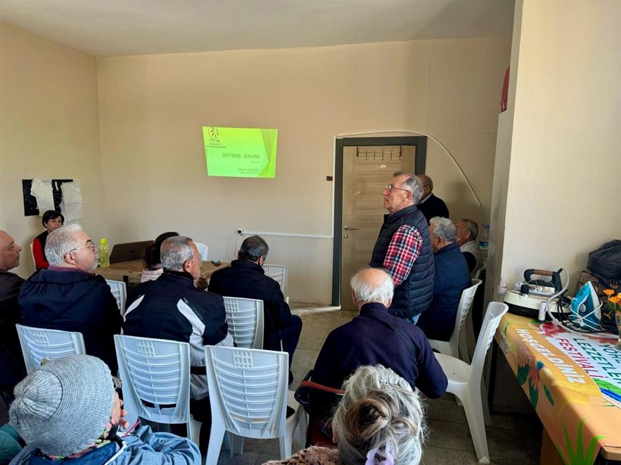 Özbek mahallemizde zeytin üreticilerimizin daha verimli bir sezon geçirmesi amacıyla Zeytin ağacında bahar bakımı budama ve gübreleme konularında eğitim düzenledik.